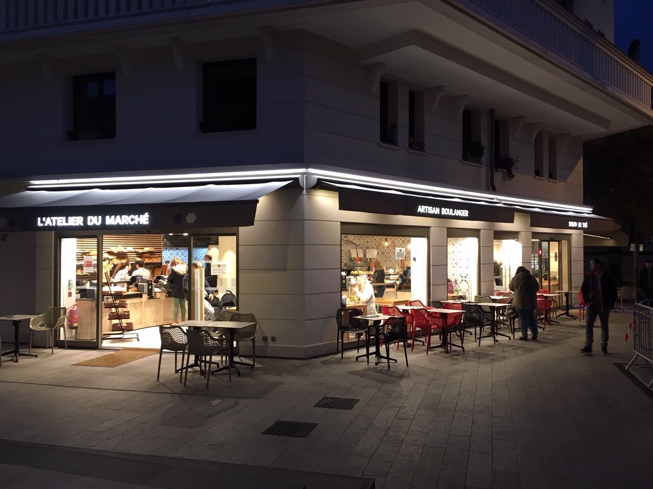 Le lambrequin lumineux constitue une formidable alternative à l’enseigne lumineuse. Visible de jour comme de nuit, il est adapté à tous les types de stores. La vaste gamme de tissus et la découpe au laser de la toile permettent la création d’un produit sur-mesure de haute qualité qui respecte parfaitement la charte graphique.