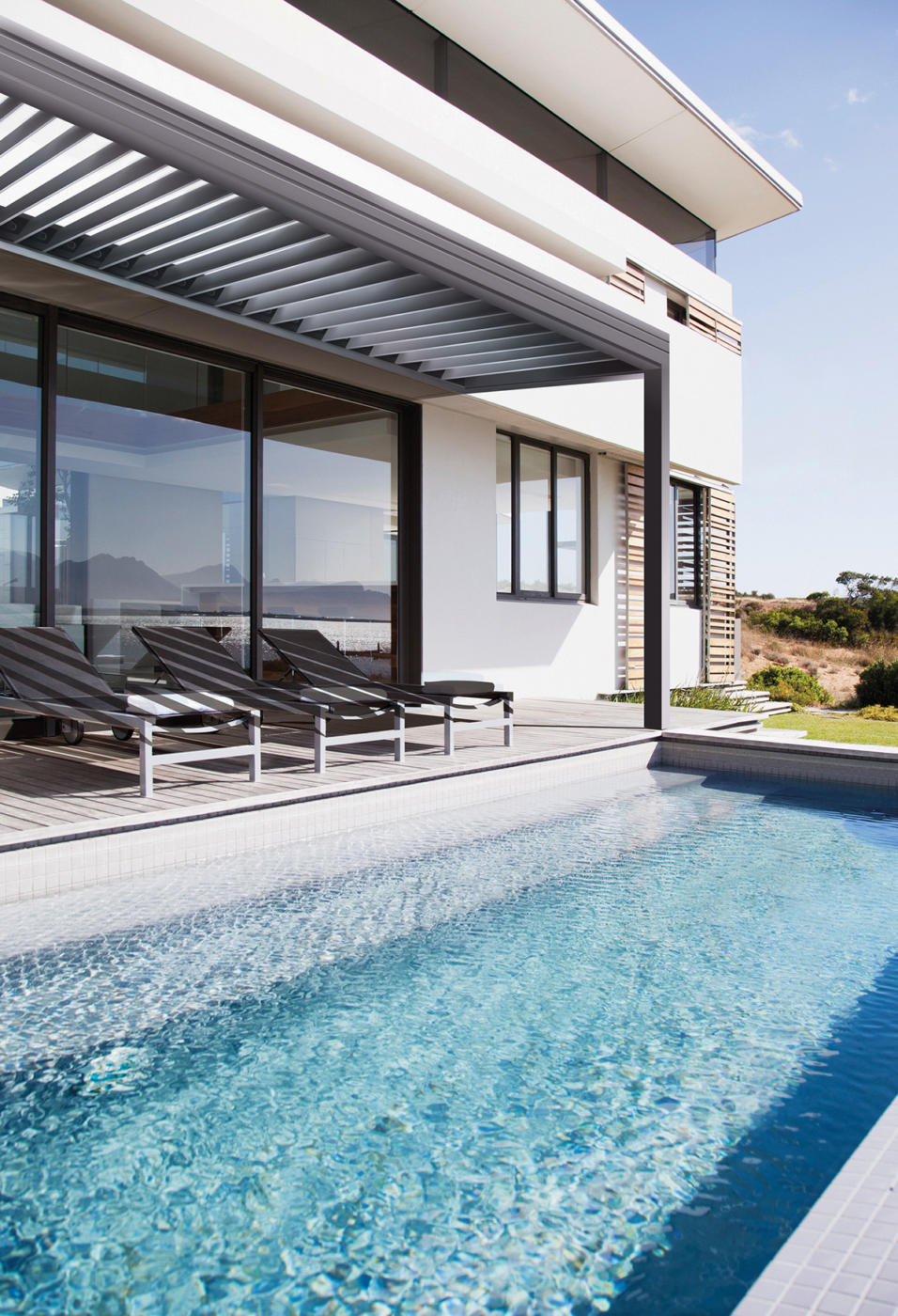 Étanchéité à l'air et à l'eau*, motorisation silencieuse et progressive, lames orientables assurant ventilation naturelle et gestion des apports du soleil et système d'évacuation des eaux de pluies.