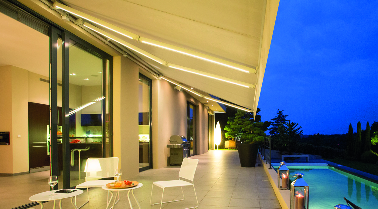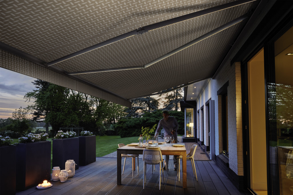 Ingénieux, le système d'éclairage LED Starlight est directement intégré à l'intérieur des bras des stores bannes